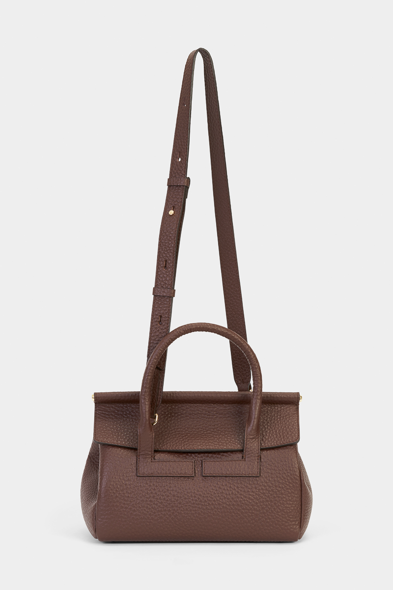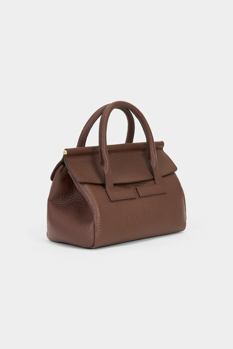 Ce sac à main élégant est confectionné en cuir de veau légèrement grainé, offrant une texture souple et raffinée au toucher. Sa teinte marron lui confère une allure à la fois intemporelle et contemporaine, idéale pour accompagner aussi bien les tenues du quotidien que les looks plus habillés. Doté de deux anses arrondies et d’une bandoulière amovible et réglable, il peut se porter à la main ou à l’épaule selon les envies. Sa forme structurée et ses lignes épurées soulignent un design minimaliste et sophistiqué. L’intérieur spacieux permet d’accueillir vos essentiels avec élégance, tandis que la fermeture sécurisée garantit un usage pratique au quotidien.