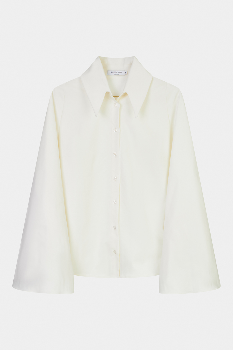 Chemise cintrée à manches trompette. Un basique intemporel réinterprété avec subtilité, parfait pour twister une tenue classique.