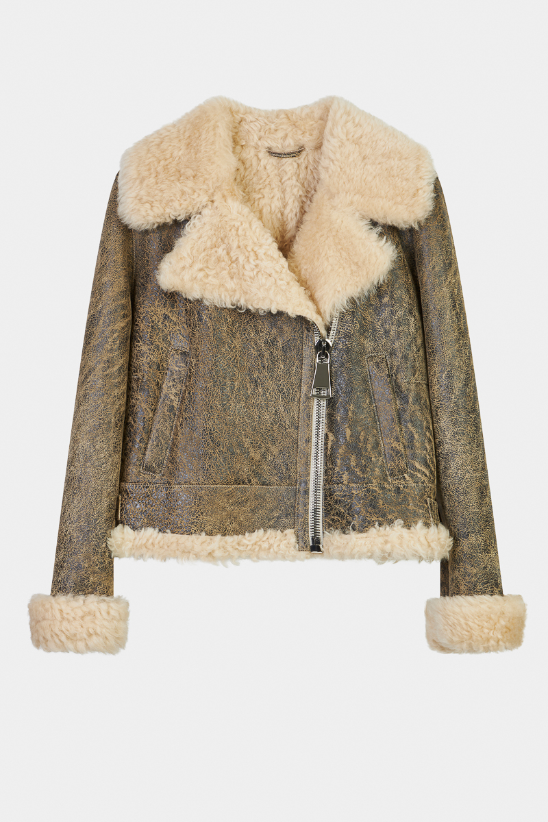 Ce perfecto en agneau retourné allie caractère et élégance avec son effet vintage craquelé unique. Fabriqué dans une peau d’agneau souple et chaleureuse, il séduit par sa texture authentique et son allure intemporelle. Sa fermeture zippée latérale et sa patte au col renforcent son esprit biker, tandis que la fourrure intérieure assure confort et chaleur tout au long de la saison. Les finitions soignées et les revers en fourrure apparente au col, aux poignets et à la base soulignent son style raffiné et artisanal. Un pièce forte et intemporelle, à porter aussi bien avec un jean brut qu’une robe fluide pour un contraste chic et décontracté.